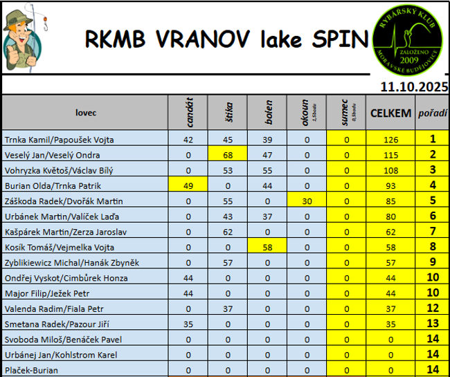 V sobotu brzy ráno se na Vranovské přehradě uskutečnil již sedmý ročník rybářského závodu RKMB VRANOV lake SPIN. Přestože počasí tentokrát připravilo účastníkům nelehké podmínky, závod potvrdil, že komunita rybářů sdružená kolem Rybářského klubu Moravské Budějovice je nejen technicky zdatná, ale i odolná a soudržná.